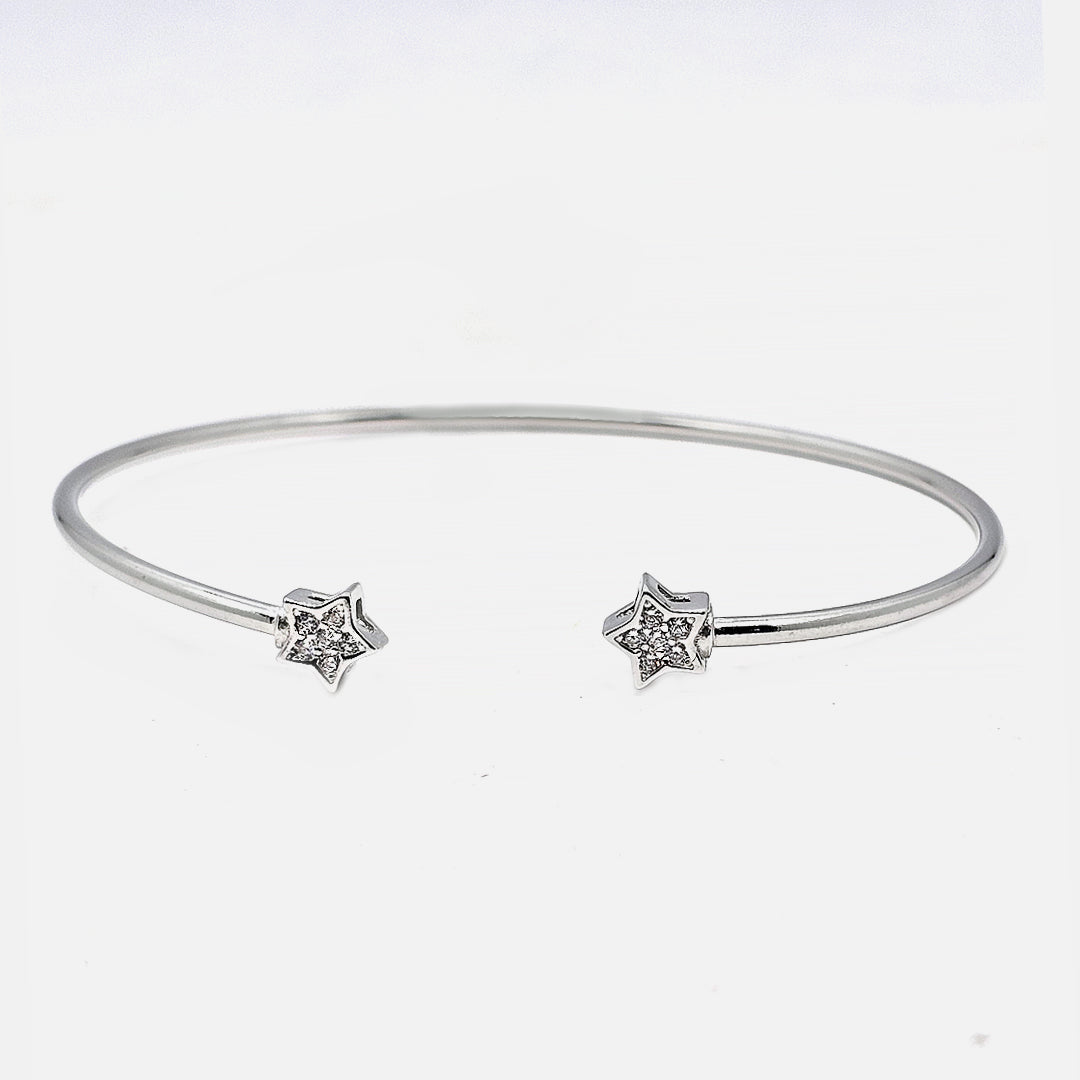 Elevate your wrist with this exquisite star-shaped kada cum bracelet, a harmonious blend of traditional craftsmanship and contemporary design. Meticulously crafted in premium silver, this piece features a distinctive star motif that catches light beautifully, making it an ideal accessory for both everyday wear and special occasions. The kada's sturdy construction ensures durability, while its elegant silhouette complements various styles effortlessly. Perfect for those who appreciate meaningful jewelry that combines cultural heritage with modern aesthetics, this bracelet serves as a versatile addition to any collection.
