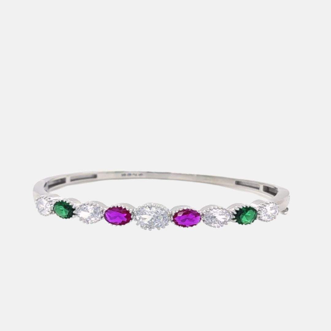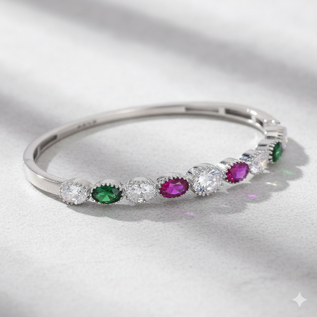 Add a vibrant touch of elegance to your collection with this beautifully crafted Sterling Silver Kada. Designed in a sleek 2.4 mm profile, it features dazzling color stones that bring life and charm to any outfit. The graceful silhouette and subtle sparkle make it an ideal accessory for both casual wear and special occasions. Whether you're elevating everyday looks or complementing festive attire, this kada enhances your style with sophistication and flair. Lightweight, durable, and effortlessly chic, it's a timeless piece every modern wardrobe deserves.