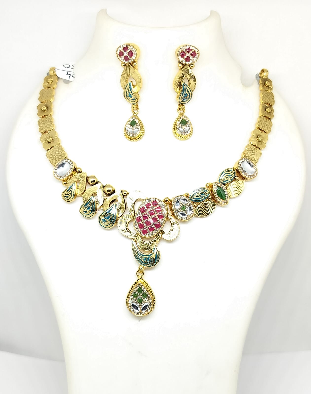 This antique necklace set showcases timeless craftsmanship with intricate detailing that reflects classic elegance. Designed to complement both traditional and contemporary attire, it adds a refined touch to any ensemble. The durable construction ensures long-lasting wear, making it a valuable addition to your jewelry collection. Perfect for special occasions or as an heirloom piece, this set embodies a rich heritage of artistry and style.